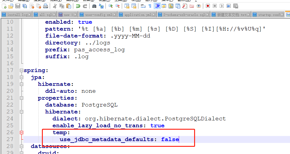 注:如果是PostgreSQL,需要增加配置 spring.jpa.properties.hibernate.temp.use_jdbc_metadata_defaults =false