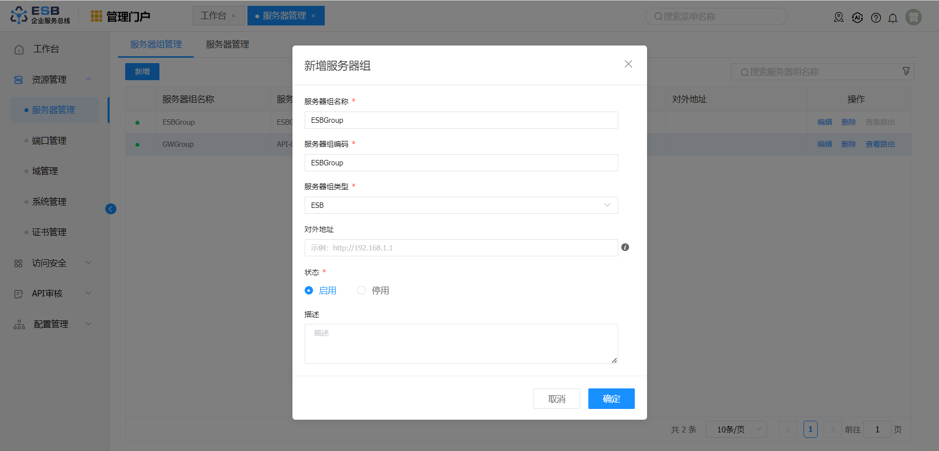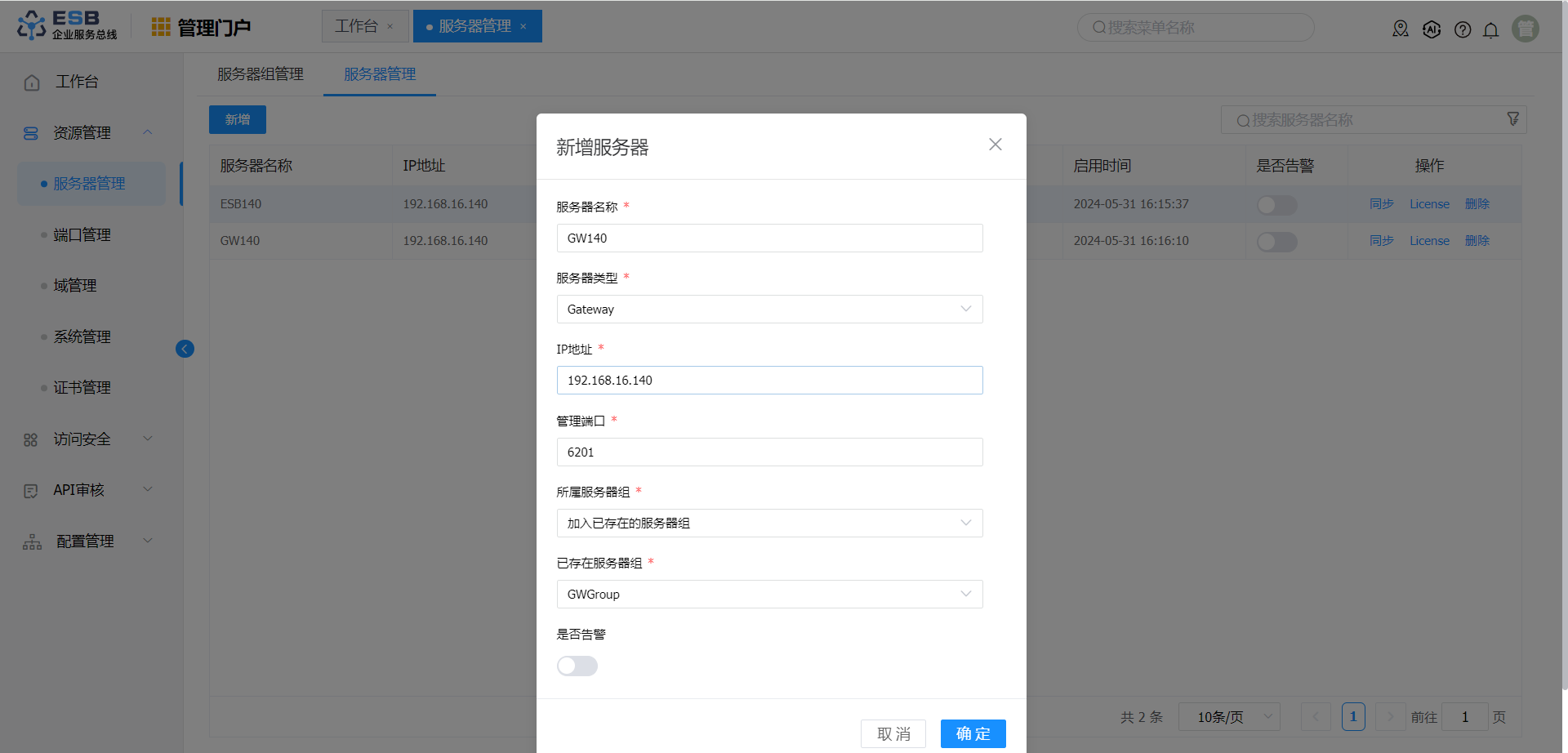 创建服务器前,需要先确认ESBServer或APIgateway已经启动成功,否则无法创建服务器。
