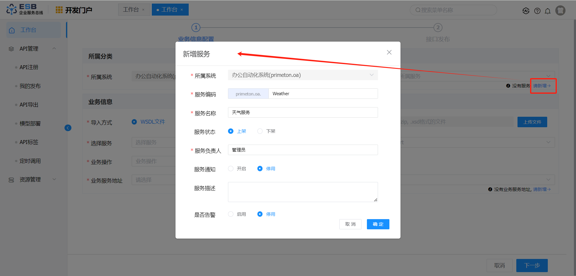 所属服务 API所属服务,若没有对应服务,请新增服务