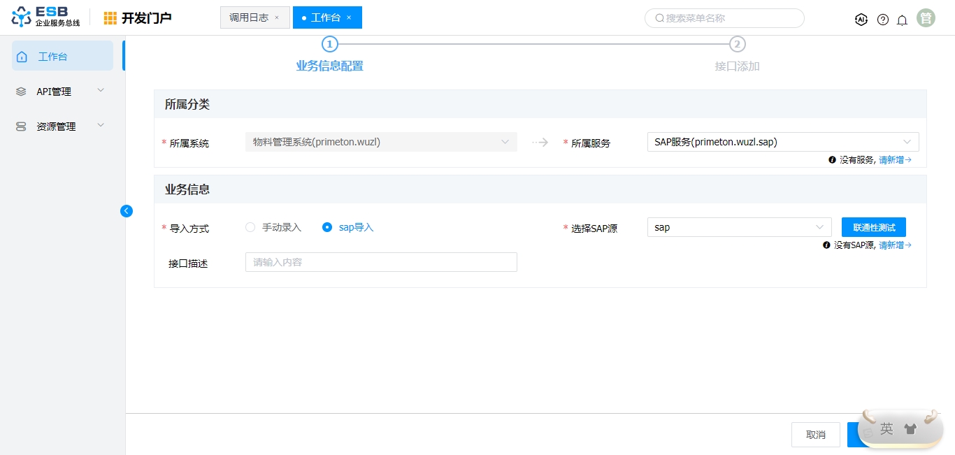 参数 说明 所属系统 API所属系统 所属服务 API所属服务,若没有对应服务,新增服务 导入方式 业务信息导入方式,可选:手动录入、SAP导入