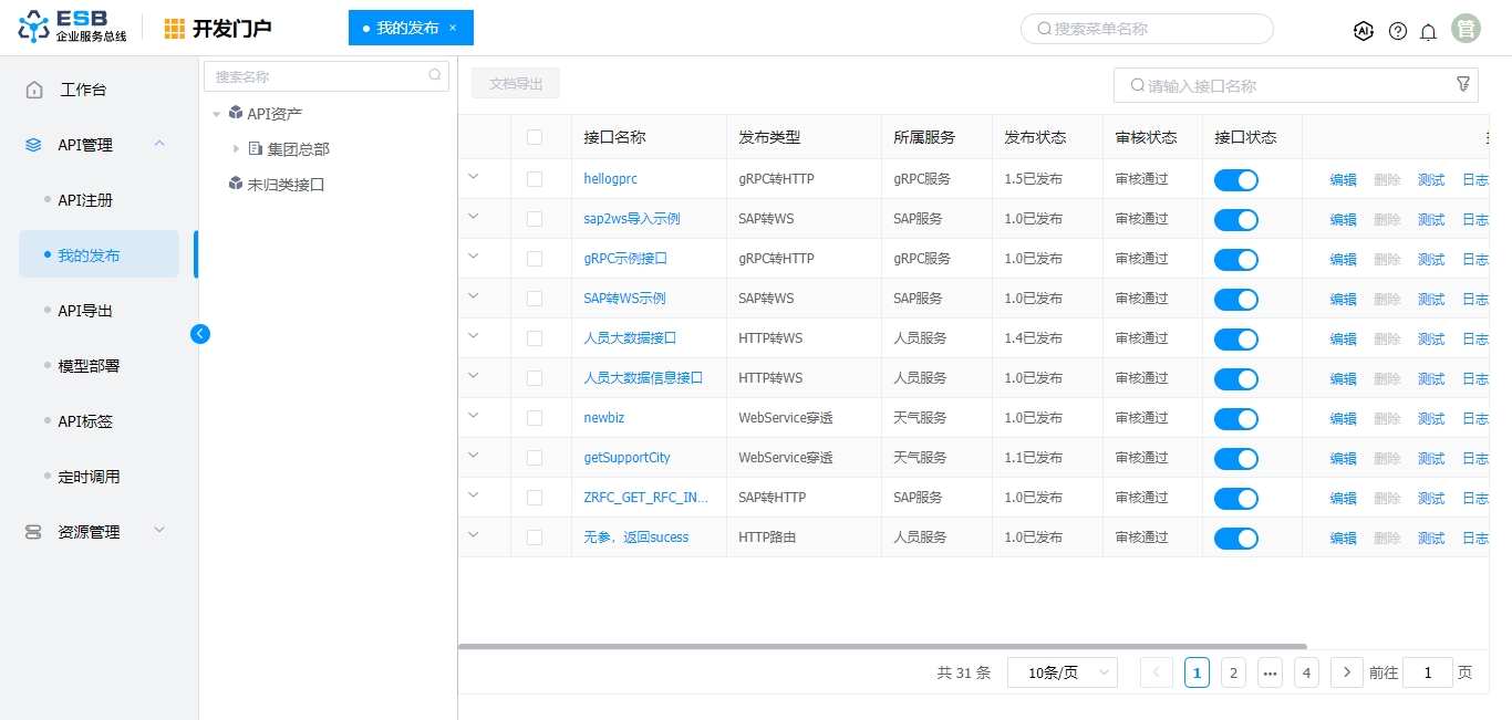 编辑 | 已发布接口修改(修改后自动生成新版本并发布) |