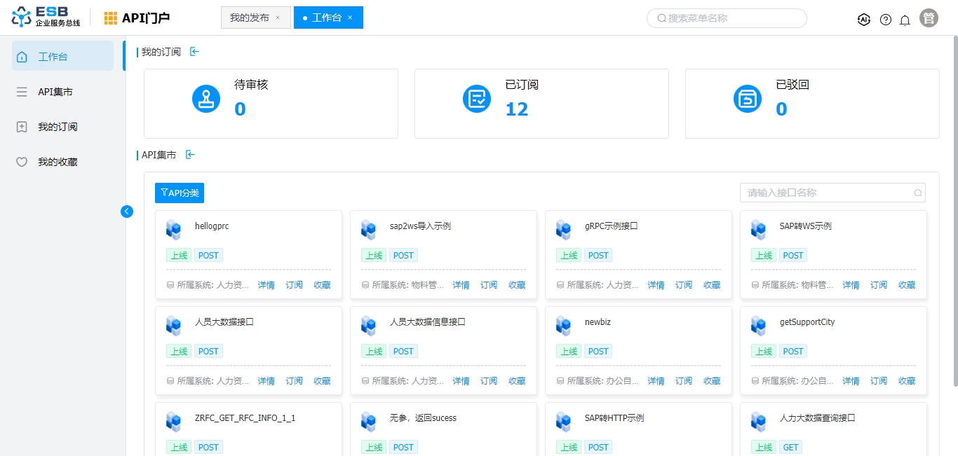 1. 使用manager账号(默认密码:000000)登录系统,点击API门户,进入API门户工作台。