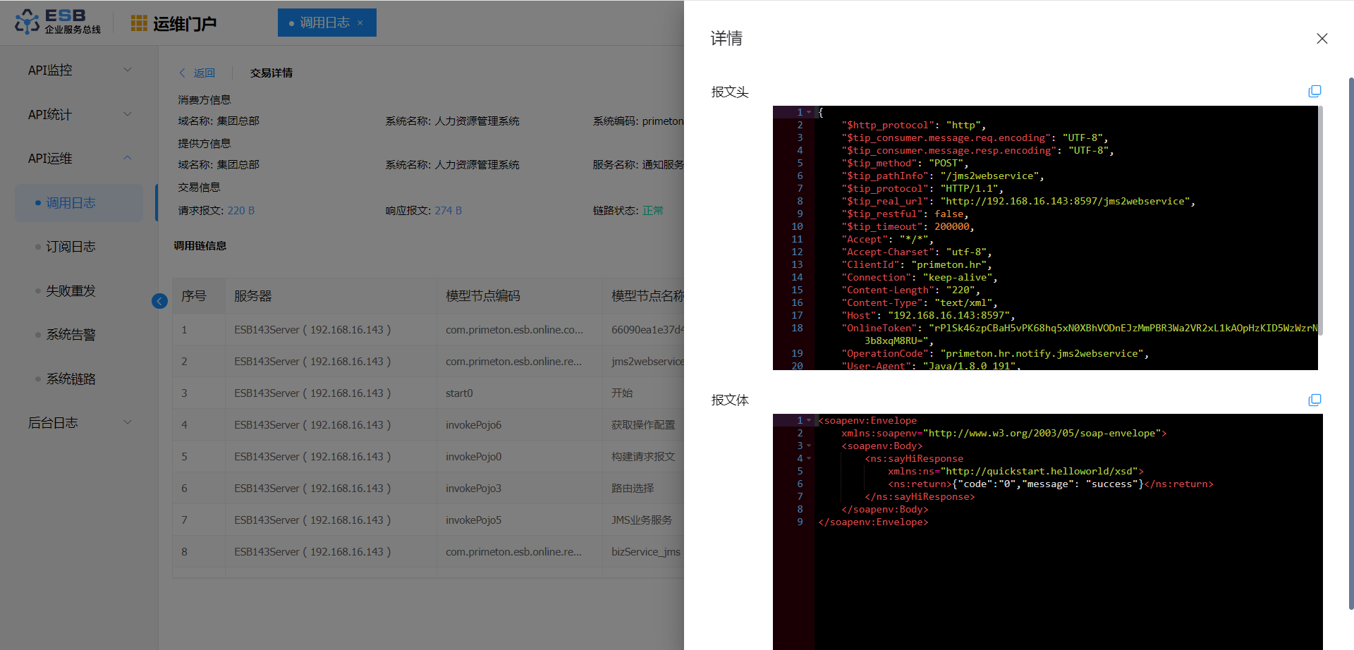 2. 点击菜单“API运维”>"调用日志",进入“调用日志”页面。
