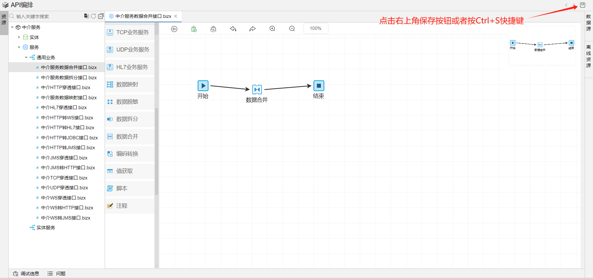 1.1. 或者点击中介服务,点击右侧的API编排按钮进入在线编排页面。如下图: