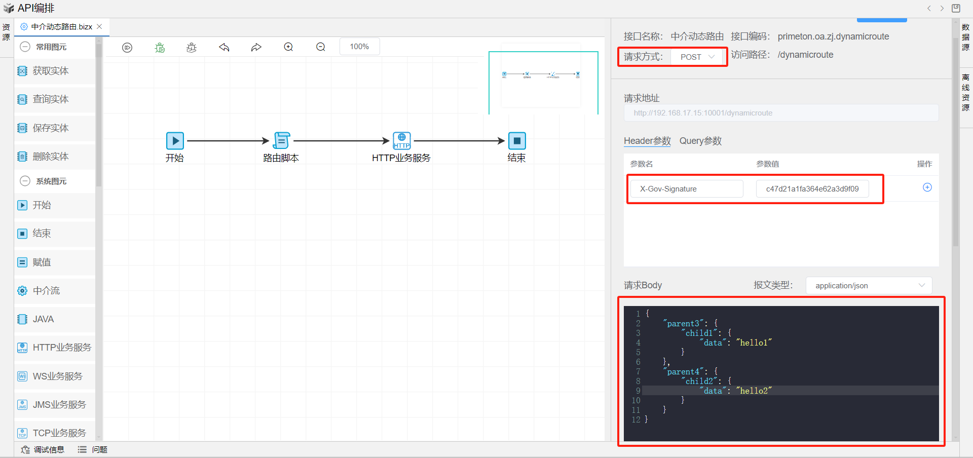 从返回内容可以看出请求的服务是脚本中动态路由指定的服务地址。