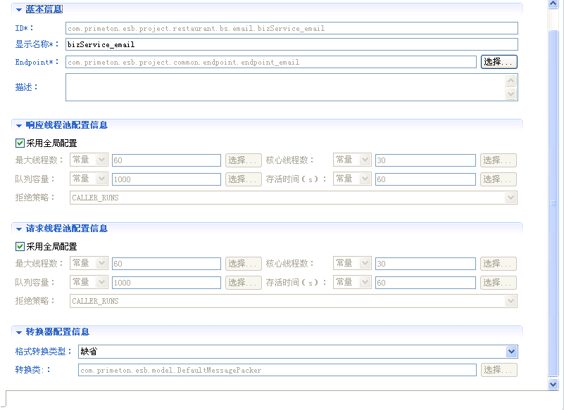 在弹出的"创建EMAIL业务服务"向导中输入创建EMAIL业务服务的各选项,点击"完成"按钮生成EMAIL业务服务。