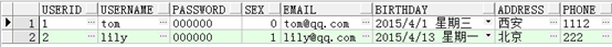 本示例数据库操作对象为Oracle,表名USERINFO,数据如下所示。