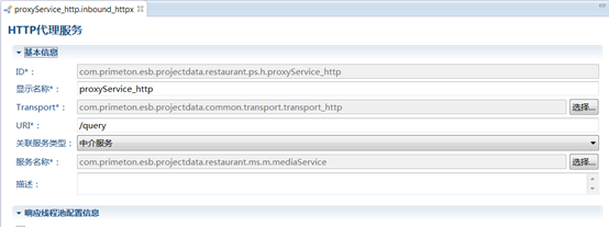 Transport选择公共module里面的Transport,URL是最后访问ESB服务的路径,关联服务选择中介服务,服务名称选择前面创建的中介。