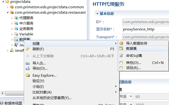 2. 创建数据集。在业务Module—数据集菜单上,右键新建数据集。