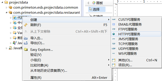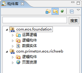 1. 显示构件库视图。选择“窗口 > 显示视图 > 其他 > ESB开发 > 构件库”,显示构件视图,如下图所示。