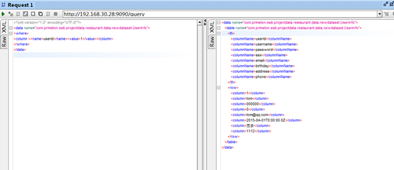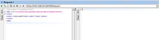 3. 启动SOAPUI,新建请求,编辑访问地址(此处访问地址为代理服务设置的URL),设置xml请求如下:(查询数据库中id=1001的字段)