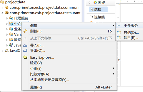 1. 编排中介。中介实现逻辑:中介解析xml请求,根据请求中的where节点数据查询数据库,然后把查询结果返回。打开中介服务,单击面板上的“服务编排”,从构件库选择添加以下图元。