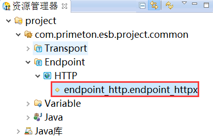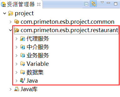 单击“完成”,系统返回ESB开发透视图,创建的项目在"资源管理器"视图中显示,如下图所示。