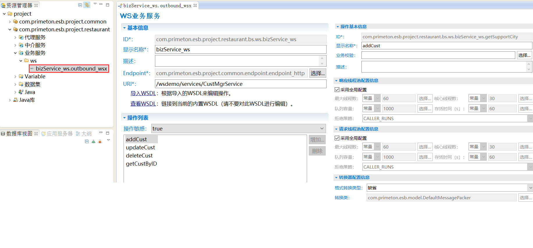 单击工具栏的保存,完成WS业务服务的创建,如下图所示。