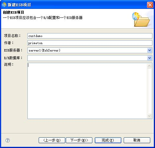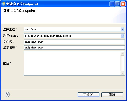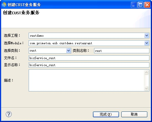 点击【完成】,在项目中生成业务Module:com.primeton.esb.custdemo.restaurant