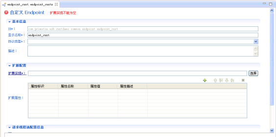 在Endpoint面板点击+按钮,可进行扩展属性的添加,属性标识和属性值为必填项,扩展属性如下图所示: