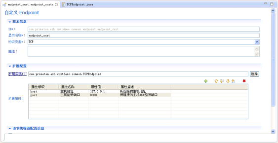 以上配置中所用到的TCP协议的transport和endpoint在ESB产品的默认安装包中是不存在的,需要做定制化的扩展实现。其中: