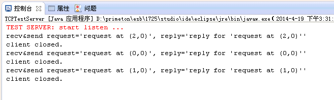 通过TCPTestClient向9999端口发送消息,经过ESB转发后,通过TCPTestServer可以监听到8888端口的消息,如下图所示: