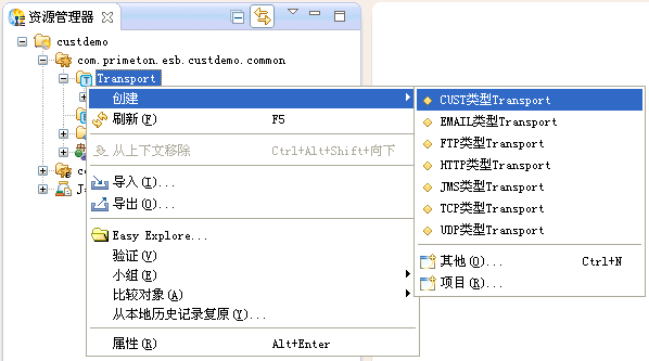 其创建并实现Java类的方法与Eclipse是基本一样的)1.1 Transport实现要点