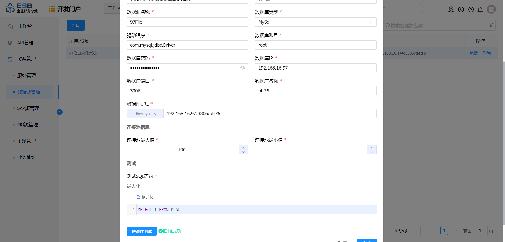 数据源管理为JDBC转HTTP在线服务提供可用的数据源。