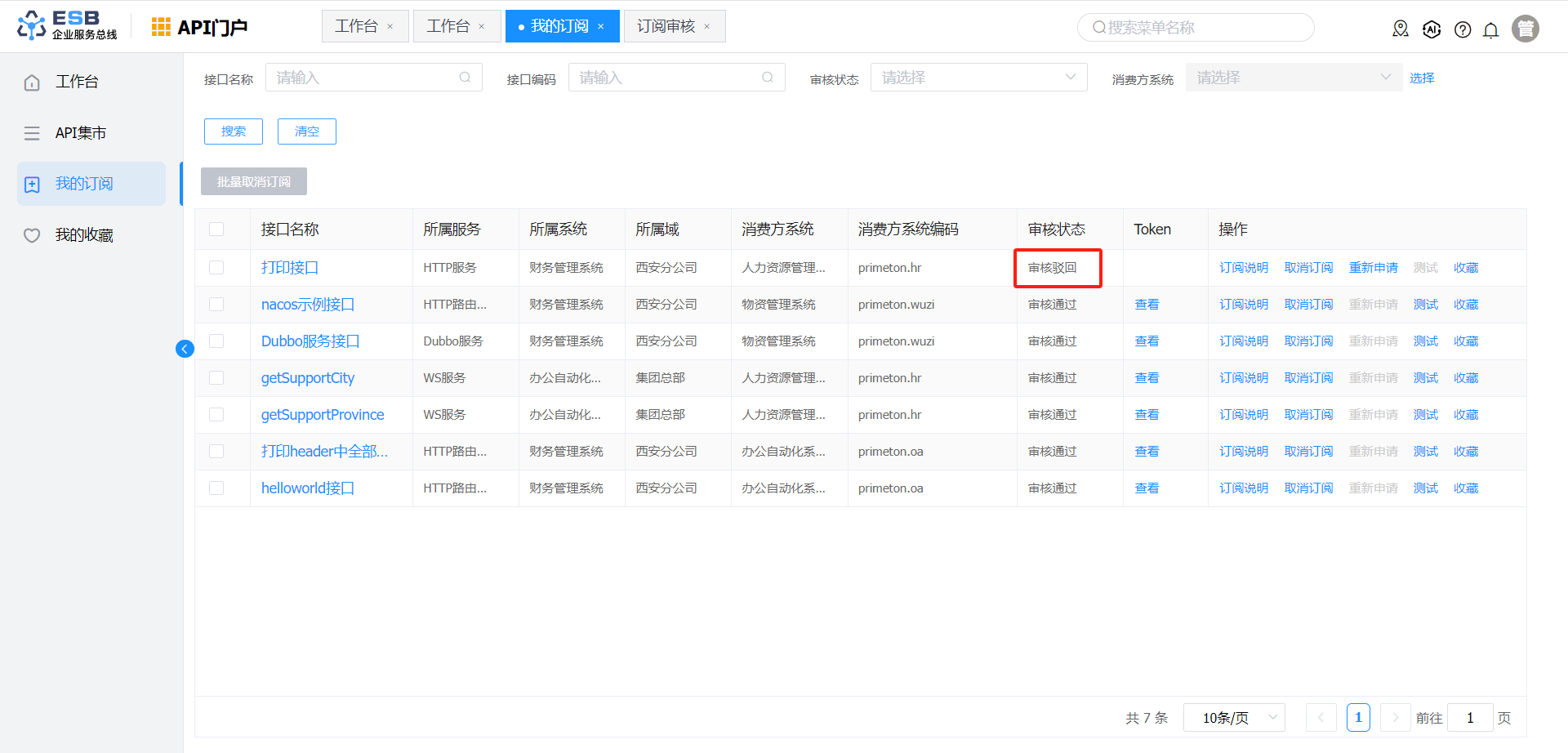 同一接口可被多个消费方系统订阅,同一个系统只能订阅同一个接口一次 |