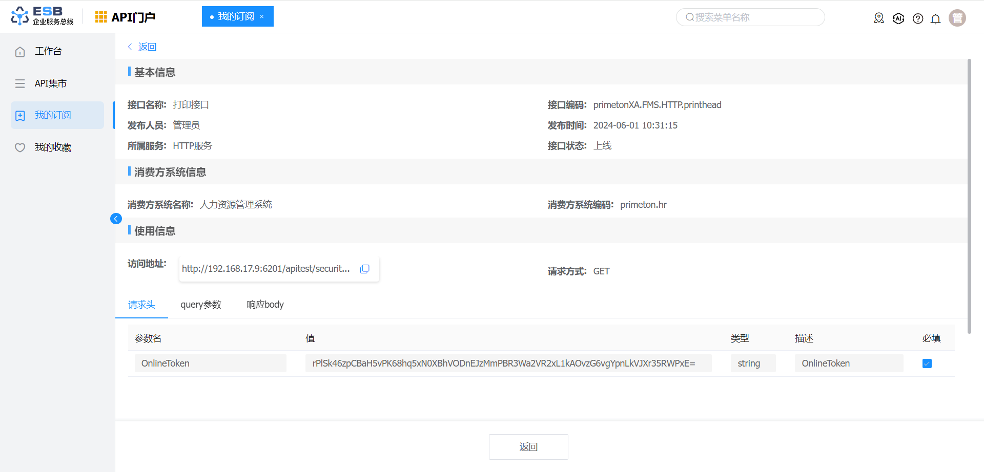 在“我的订阅”页面,点击接口名称,进入接口信息页面。
