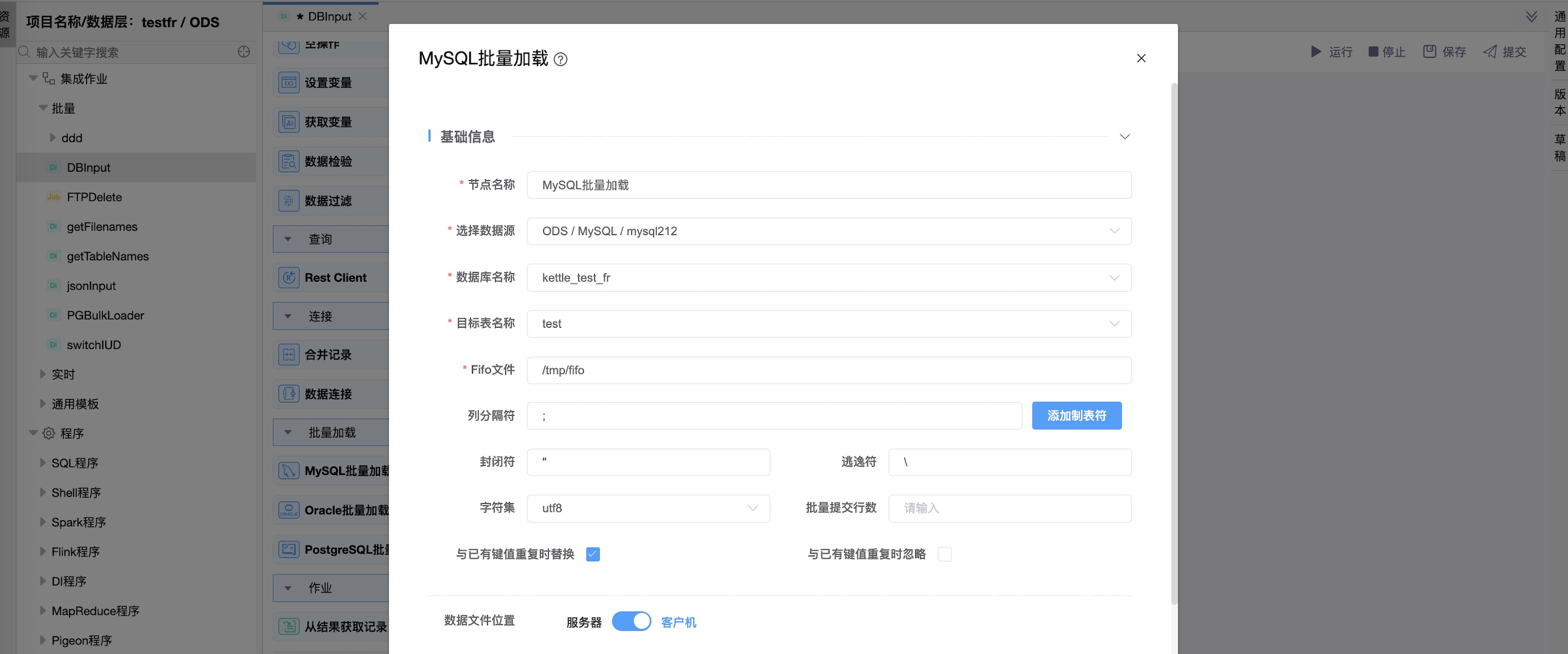 功能介绍:MySQL 批量加载程序使用“将数据加载到表中”将数据从 Kettle 内部流式传输到命名管道......”到数据库中。