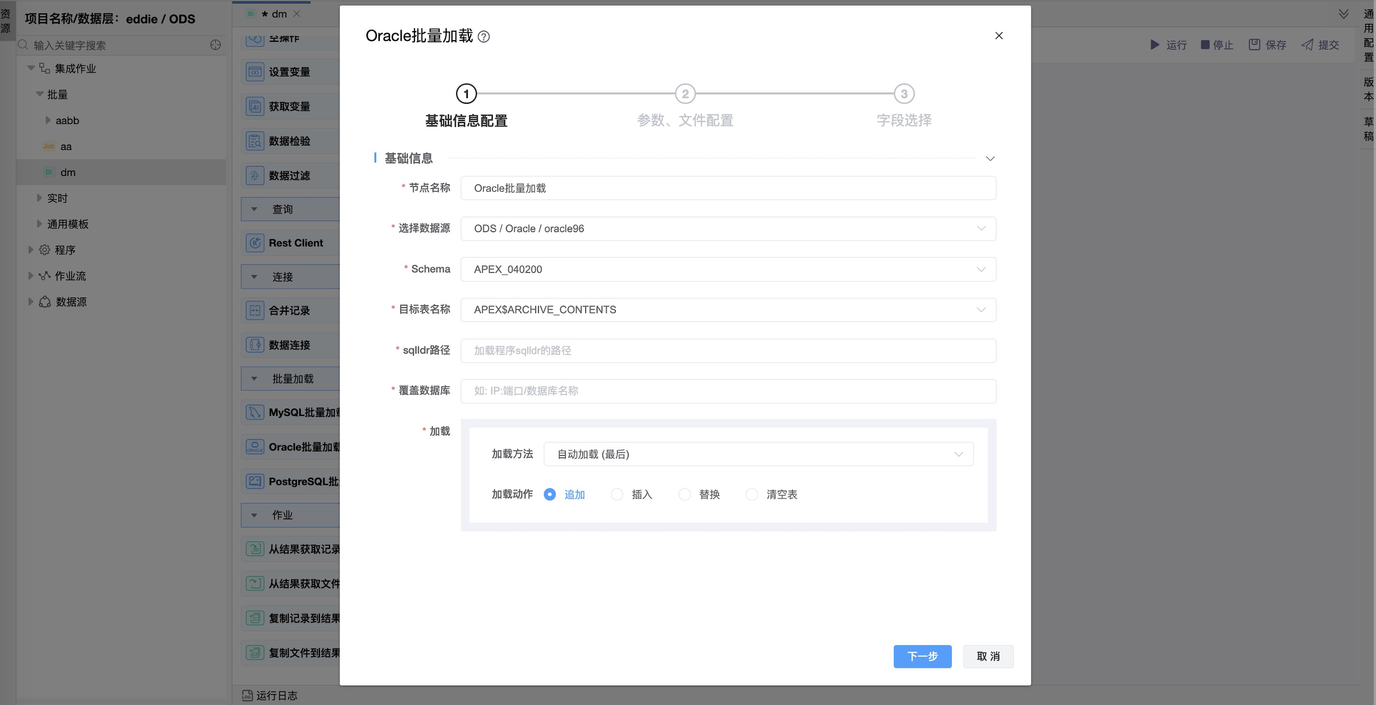 功能介绍:此步骤类型允许您批量加载数据到 Oracle 数据库。它将接收到的数据写入合适的加载格式,然后调用Oracle SQL*Loader将其传输到指定的表中。