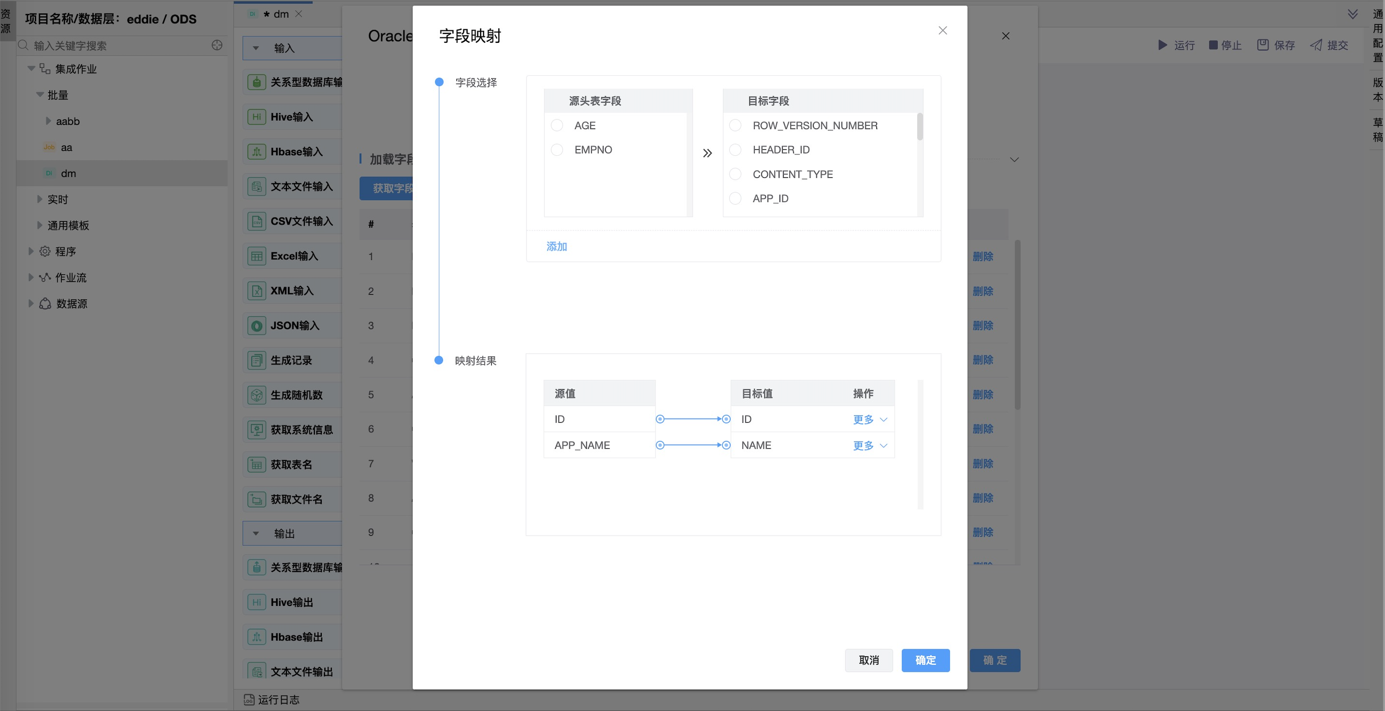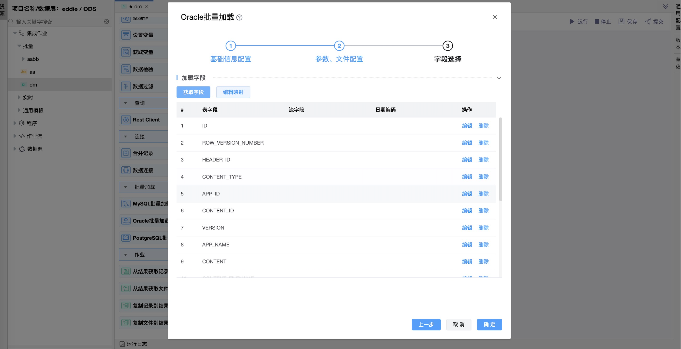| 加载字段 | 这个表包含了加载数据的字段列表,属性包括: 表字段:要在Oracle表中加载的表字段; 流字段:从传入行中获取的字段; 日期编码: “日期”或“日期掩码”决定如何在Oracle中加载日期/时间戳。当留空时,对于日期,默认为“Date”。“Date”类型将值截断为月几,而DateTime选项传递日期和时间信息。 |