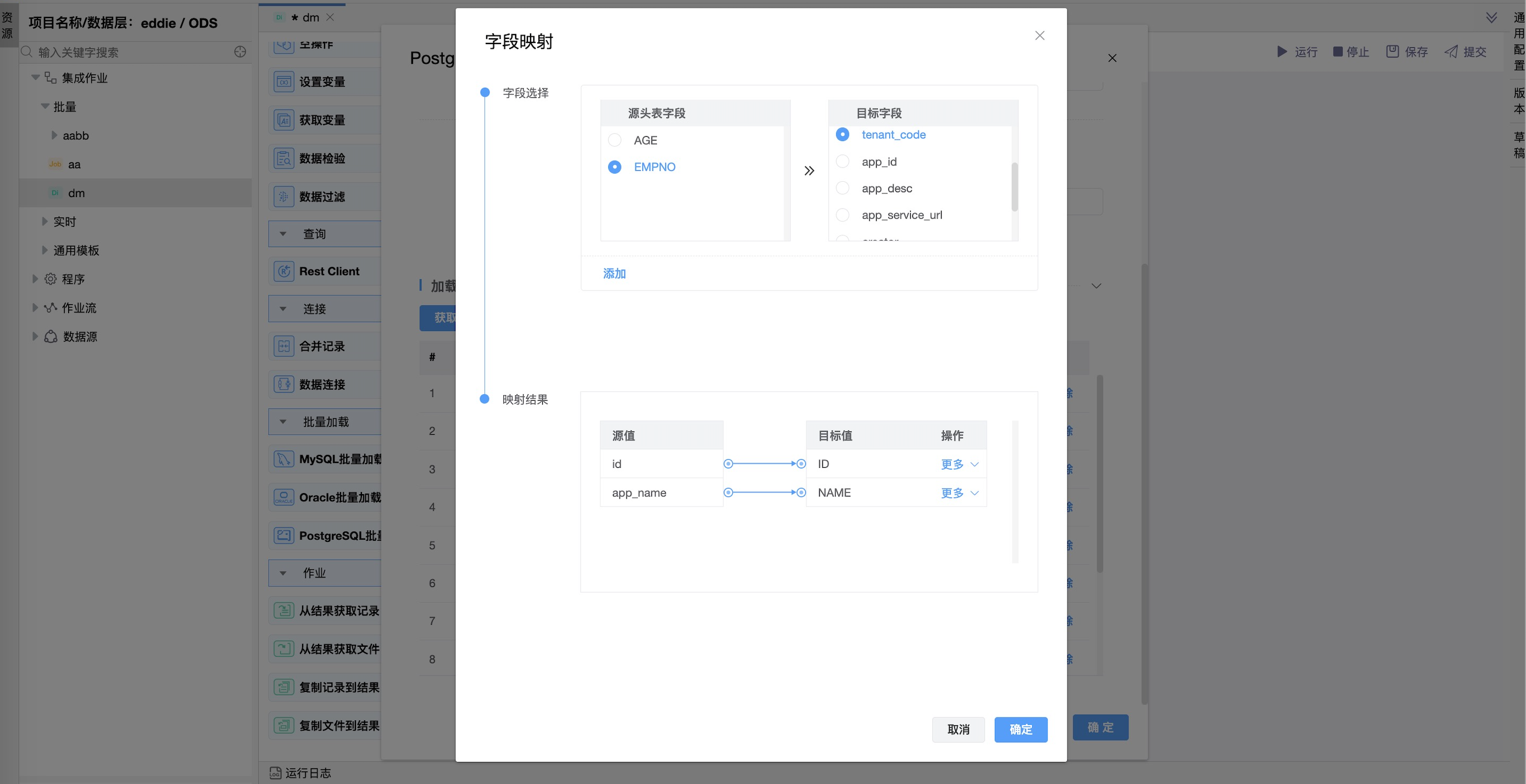 | 加载字段 | 这个表包含了加载数据的字段列表,属性包括: 表字段:PostgreSQL表中要加载的表字段; 流字段:从传入行中获取的字段; 日期编码: “日期”或“日期掩码”决定如何在PostgreSQLe中加载日期/时间戳。当留空时,对于日期,默认为“Date”。“Date”类型将值截断为月几,而DateTime选项传递日期和时间信息。 |