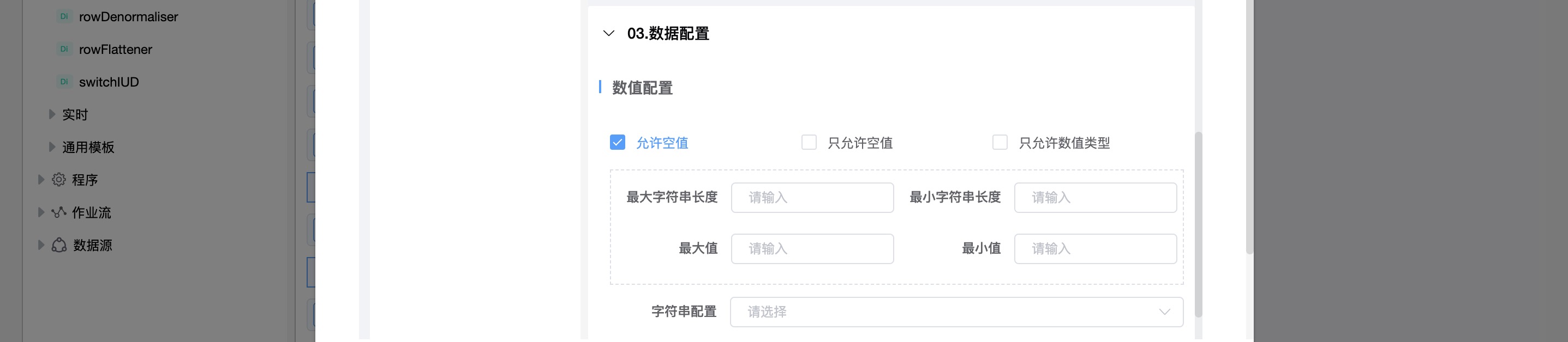 功能介绍:该组件用于校验数据字段、长度、类型、字段是否为空、字段是否在指定的范围内。数据验证通常用于确保传入的数据具有一定的质量。验证可能由于各种原因而发生,例如,如果您怀疑传入的数据质量不高,或者仅仅是因为您有某个SLA。