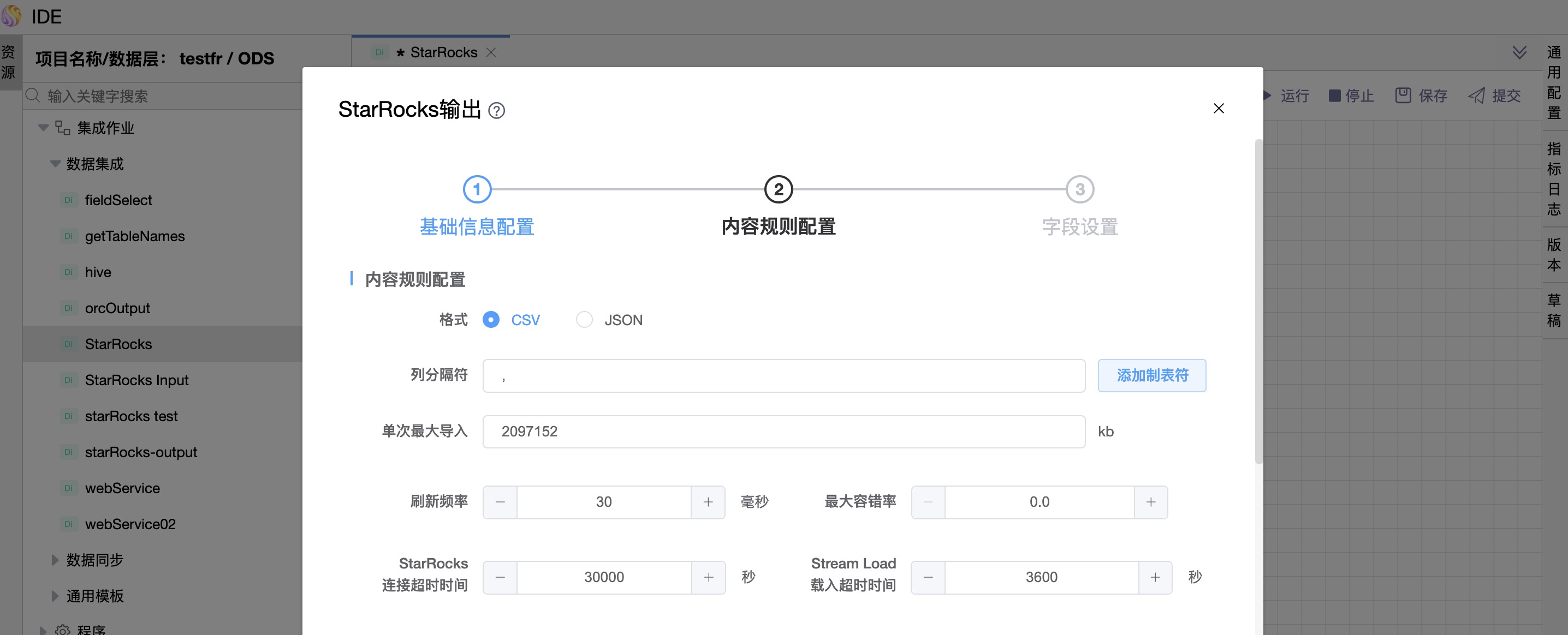 功能介绍:StarRocks 输出组件用于向StarRocks数据源写入数据。