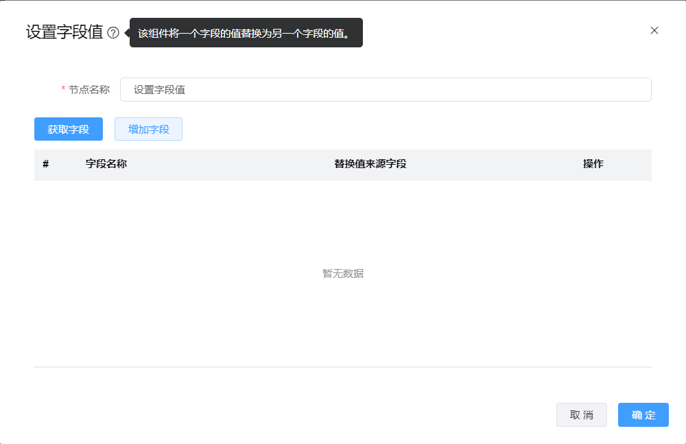 | 替换值来源字段 | 从前置步骤输出流中,指定需要替换字段名 |