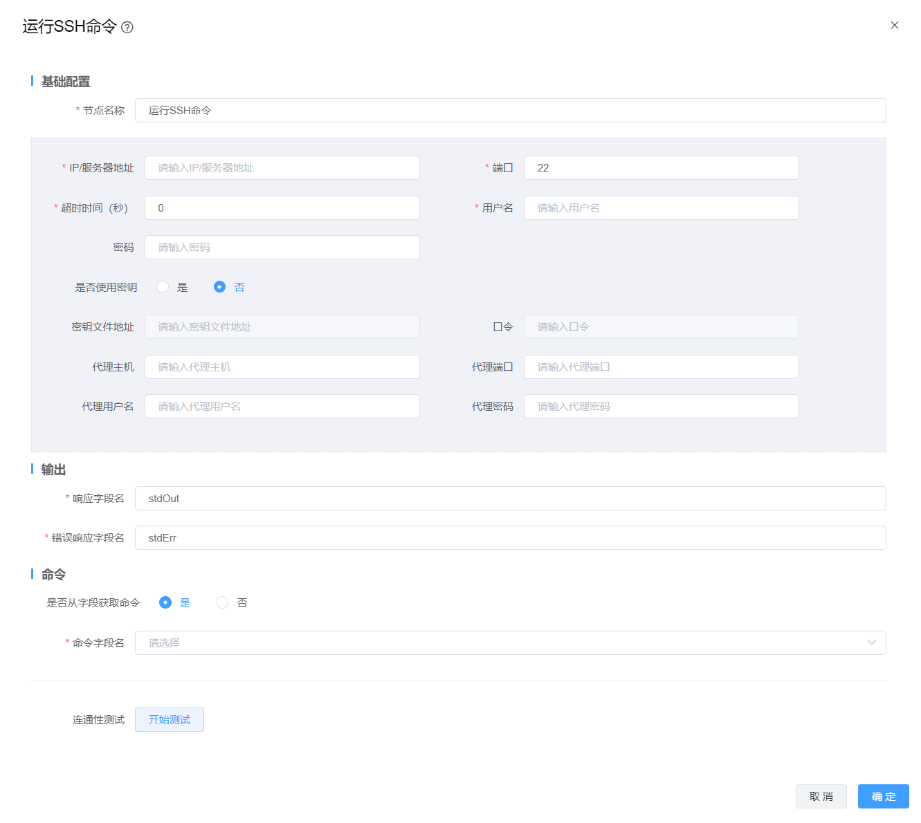 | 是否从字段获取命令 | 是否从前置步骤输出流中获取包含执行命令字段名称 |