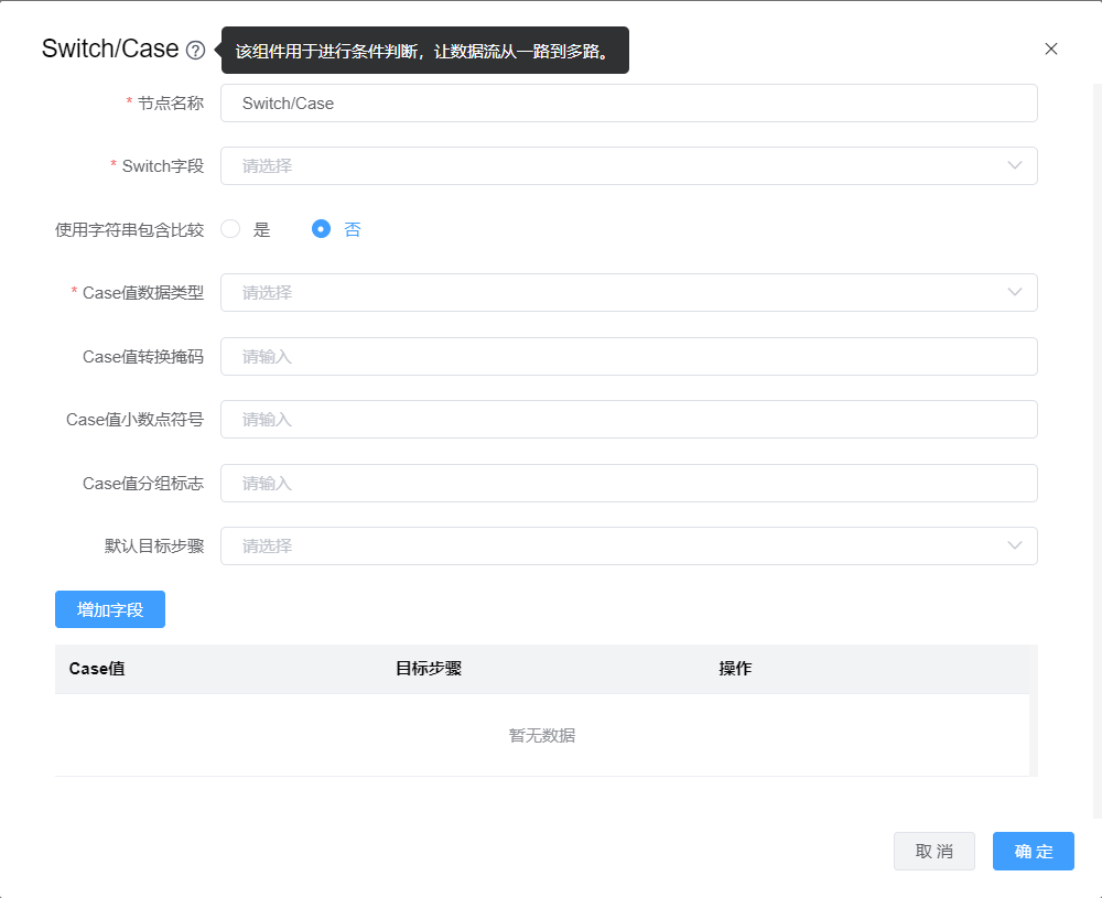 | Switch字段 | 从前置步骤输出流获取字段,将该字段作为条件字段 |