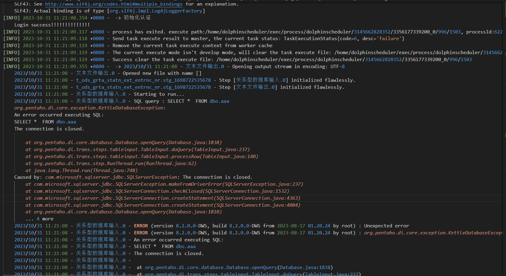 2023/10/31 11:21:08 - 关系型数据库输入.0 - Caused by: com.microsoft.sqlserver.jdbc.SQLServerException: The connection is closed.