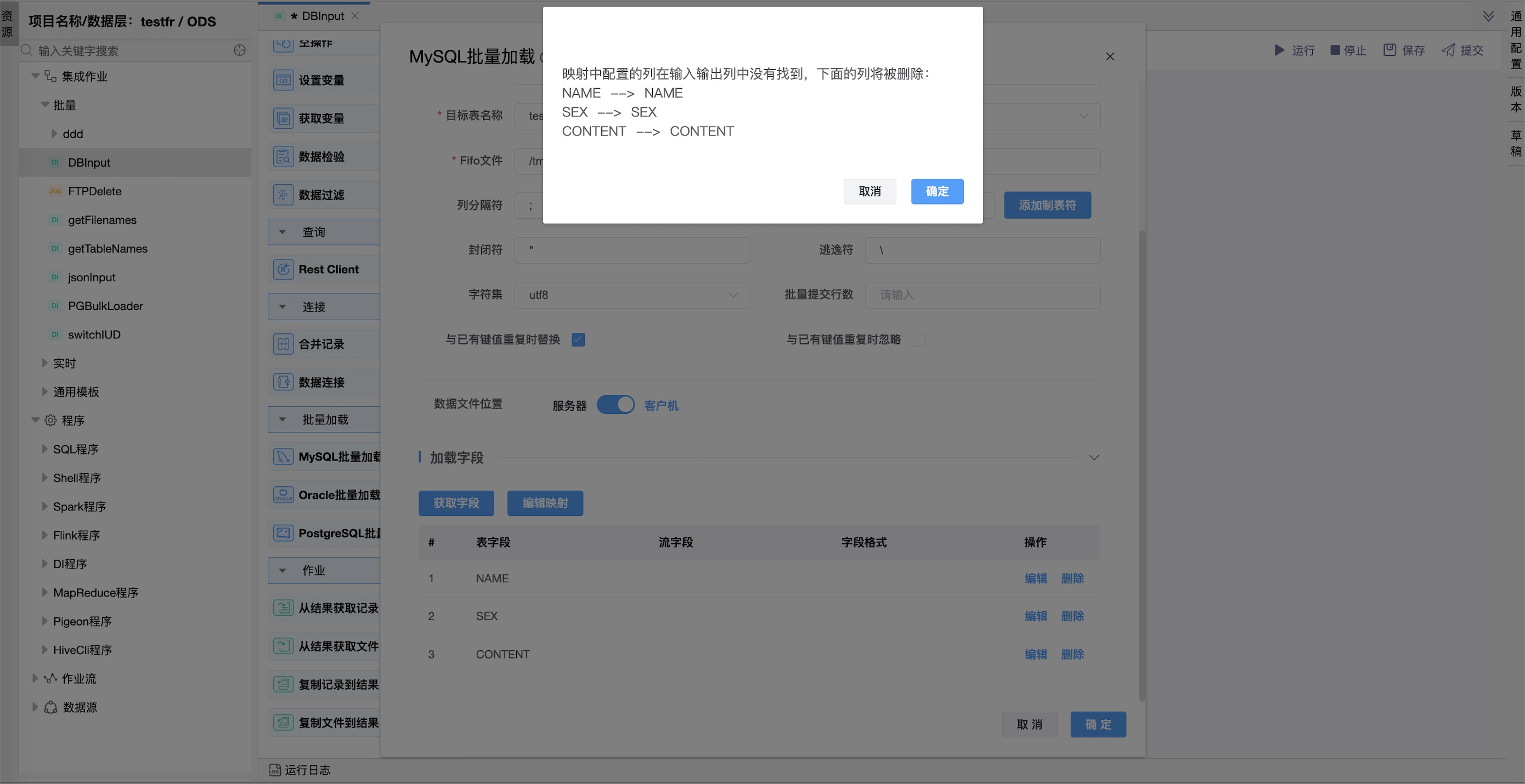 功能介绍:MySQL 批量加载程序使用“将数据加载到表中”将数据从 Kettle 内部流式传输到命名管道......”到数据库中。