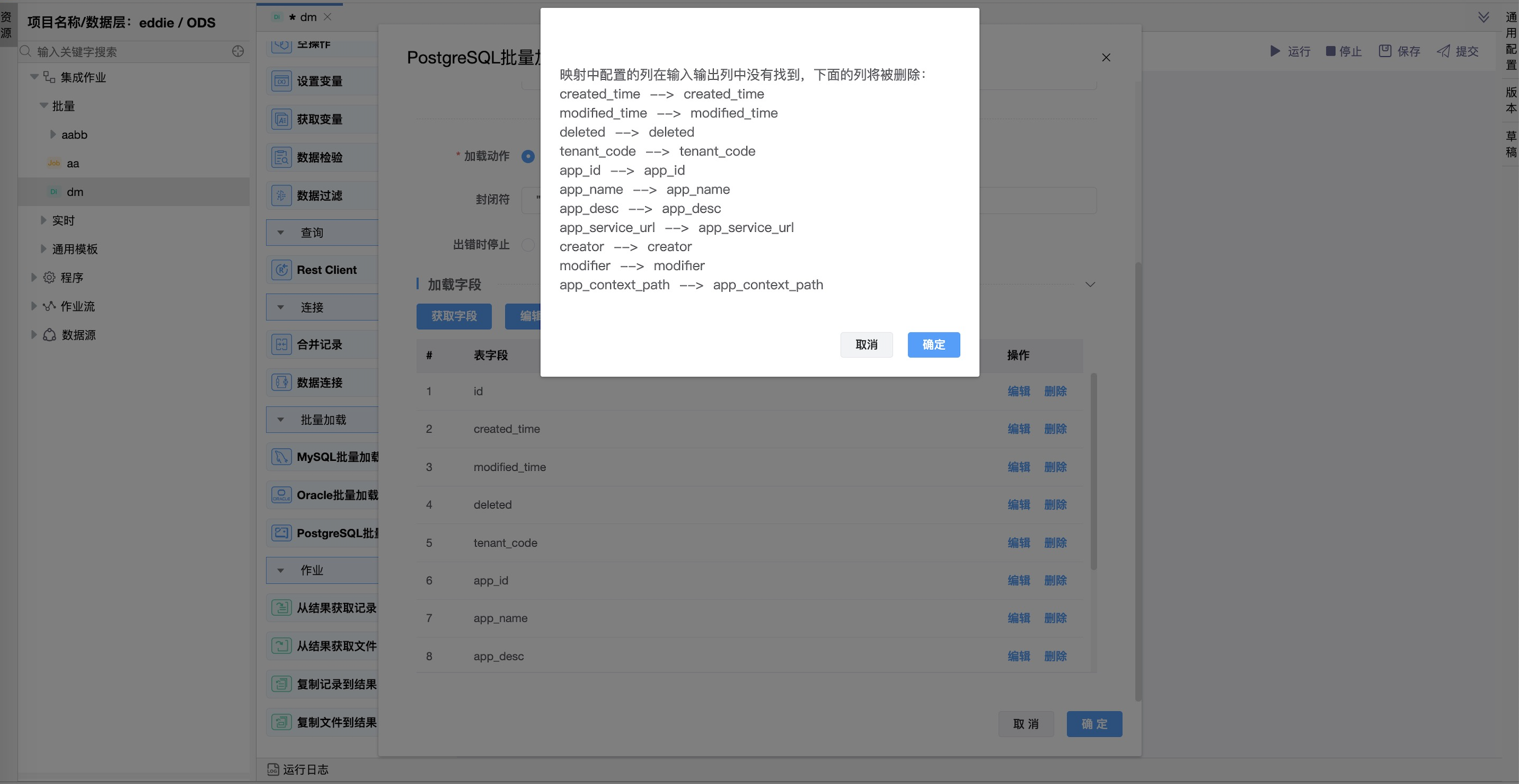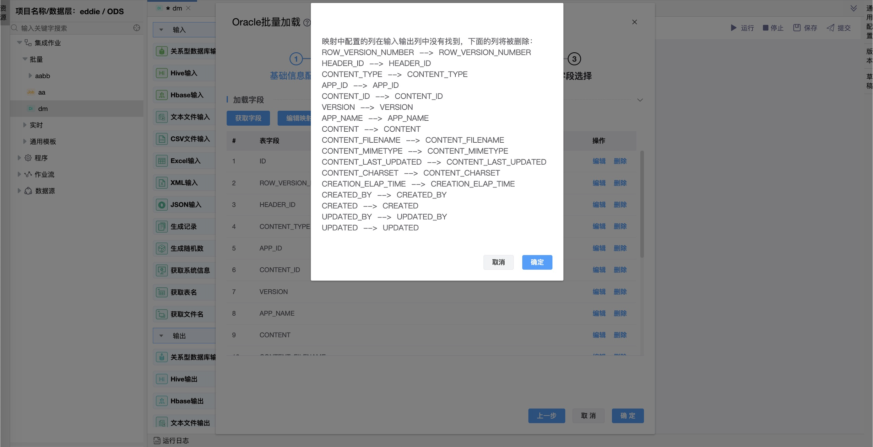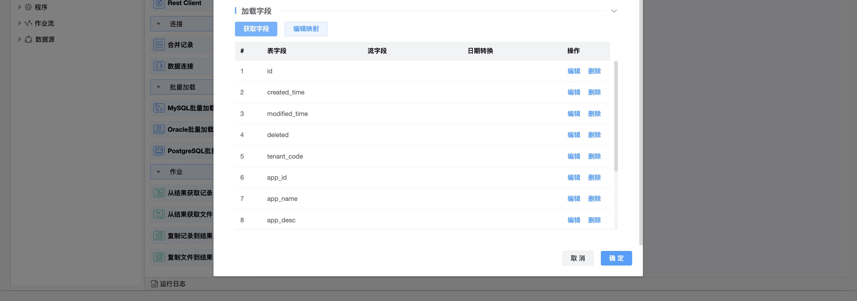 《基础信息配置》 《参数、文件配置》 《字段选择》 “获取字段” “编辑映射”(需连接输入节点)