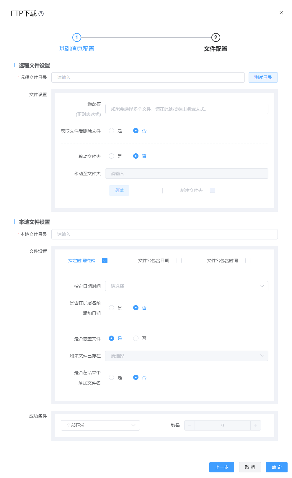 获取文件数不小于:指定ftp目录下成功下载文件数大于该值,组件执行结果成功