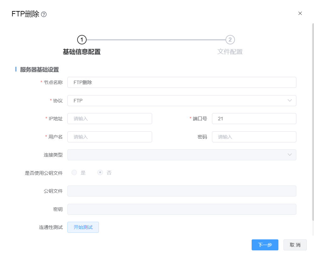 功能介绍:FTP删除用于从指定 FTP 服务器上删除文件。