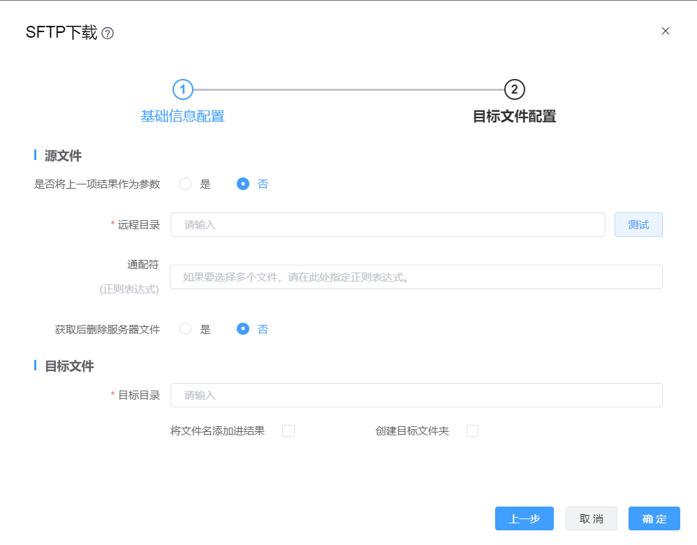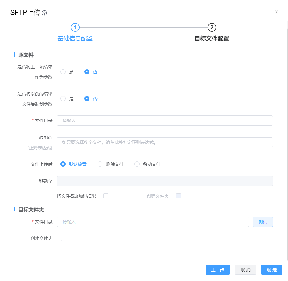 创建目标文件夹:勾选此选项,服务器目录不存在时,创建目录