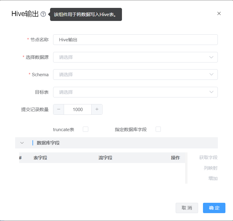 | 数据库字段 | 表字段: 最终输出的目标表中的列名 |