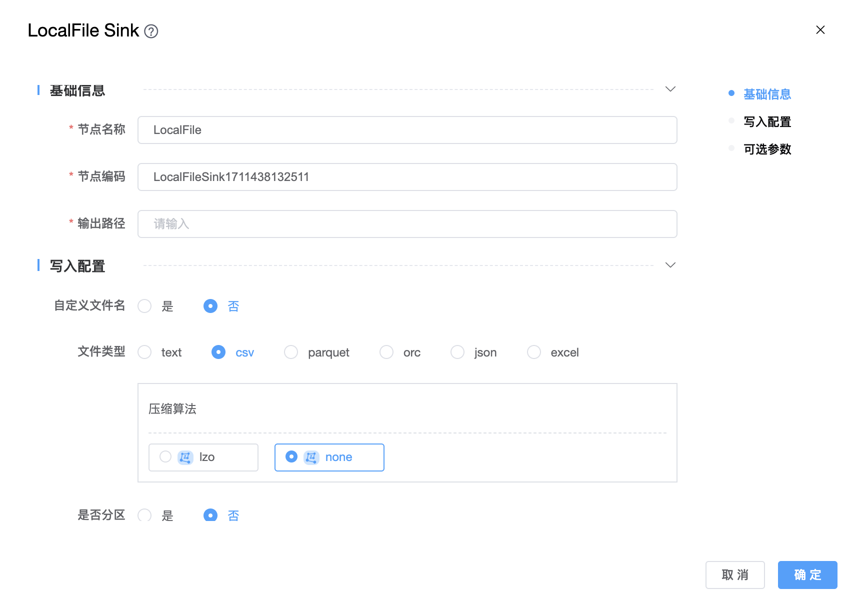 功能介绍:LocalFile Sink。用于从本地文件系统读取数据。