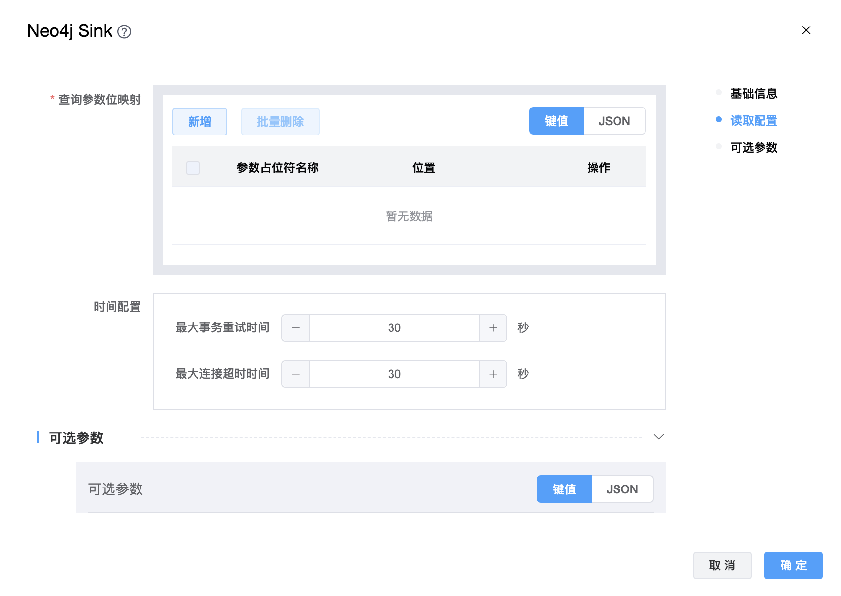 | 可选参数 | 关系型数据库 Sink 的其他参数,用户可以根据需求进行配置。 |