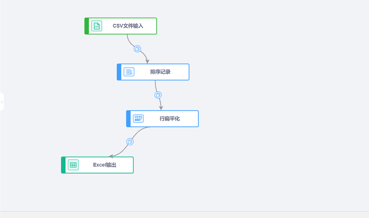 功能介绍:行扁平化允许您平面化顺序提供的数据。当您有一个按连续行组织的文件,其中每行是一个属性,并且您希望将这些行数据结构化为列时,请使用此组件。前置需接排序记录组件。