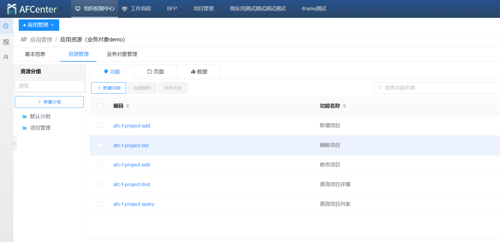 为了支撑像项目管理类似的业务场景,afcenter提出了业务对象概念。例如项目就是一个业务对象。在平台中可以给业务对象添加角色、添加页面资源、功能码资源、配置菜单、给角色赋予权限;比如可以给项目这个业务对象添加项目经理、开发经理等角色,配置权限维护和项目任务菜单等。