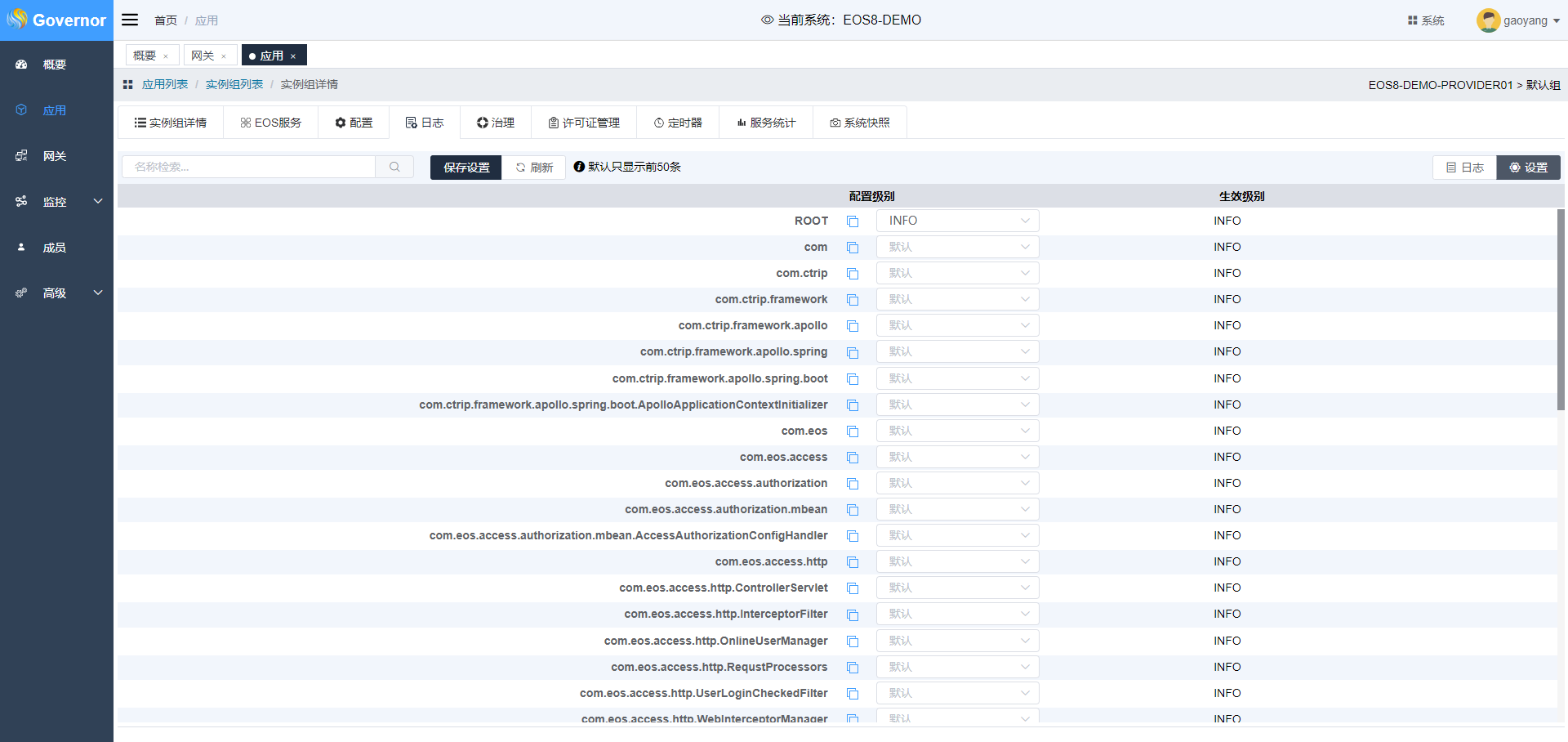 本章节所描述的是应用在服务器部署后,如何在Governor中查看应用系统日志。