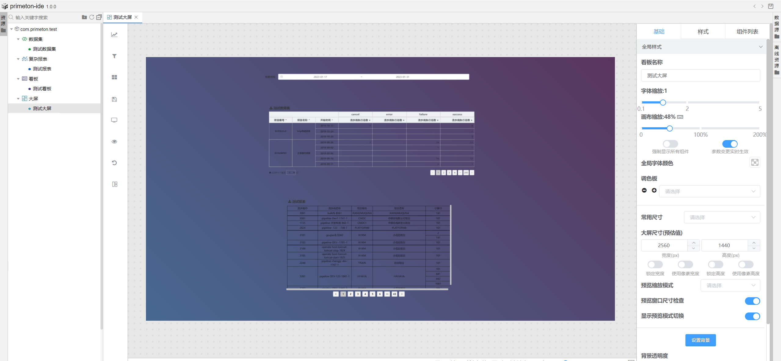 2. 在新建的测试大屏中,编辑其他相关信息,具体开发详解请参考iData开发手册。