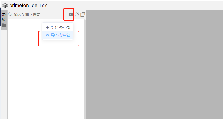 1. 在生产环境中,建立同名应用EOS8-DEMO-APP以及报表数据源,打开应用的在线开发IDE,在资源视图中点入导出构件包,选择资源包afc_lowcode_project_contribution_EOS8-DEMO-APP.zip。