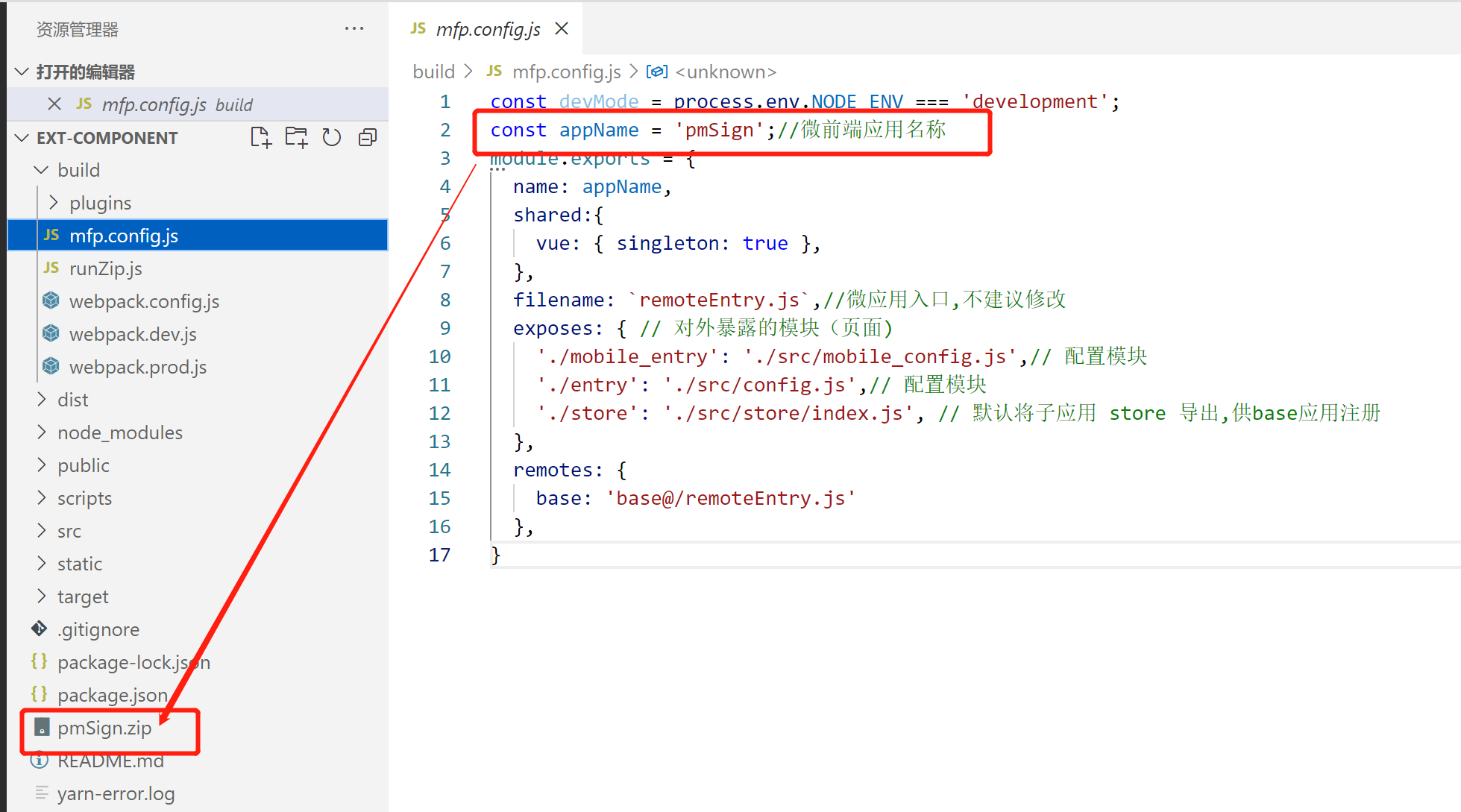 修改webpack.dev.js中publicPath,publicPath与mfp.config.js中appName一致